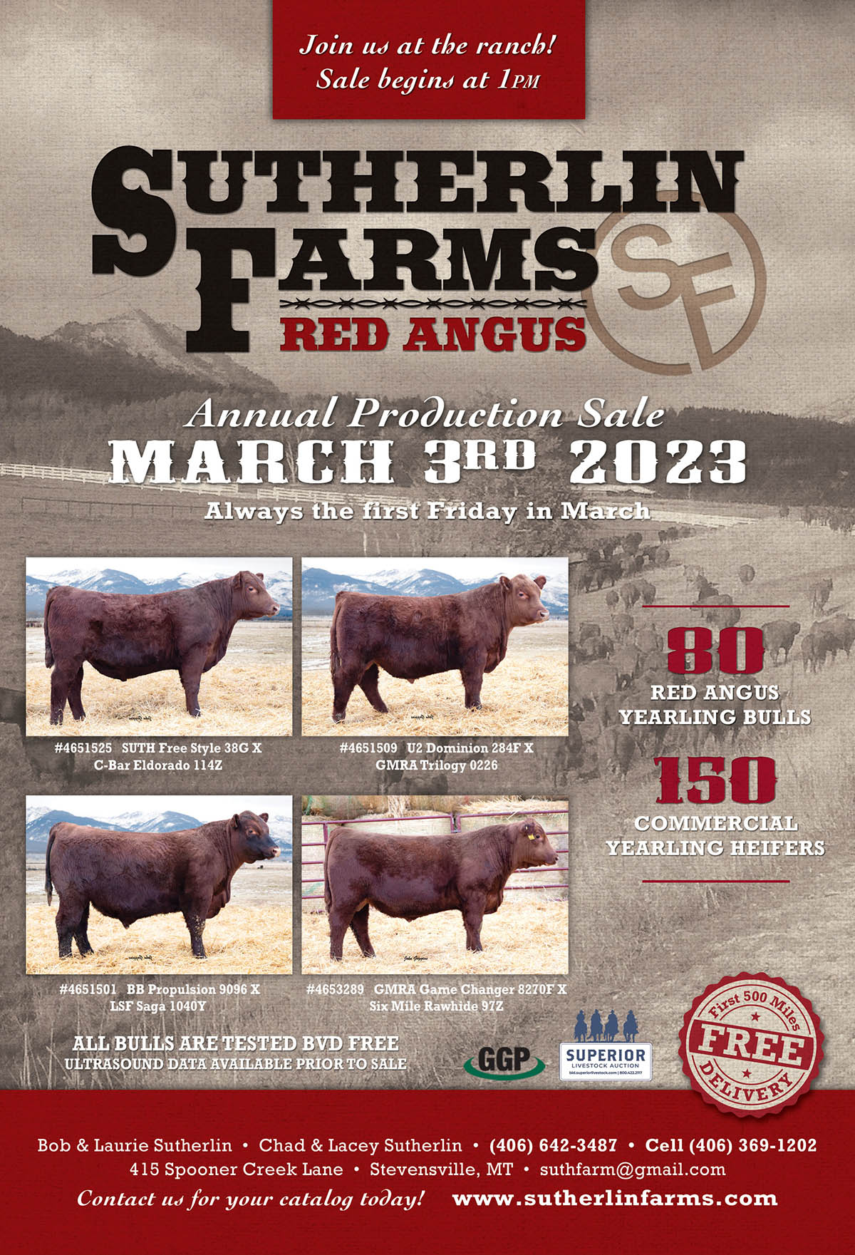 We are a family run operation, located in the Stevensville area of the beautiful Bitterroot Valley, Montana. We are a diversified operation that has a Registered Red Angus cattle herd, a commercial cattle herd and a Bull Development Feedlot. In addition, we also farm over 1,000 acres of wheat, barley, alfalfa and corn.